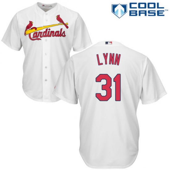 Home>MLB>St. Louis Cardinals>Lance Lynn>Men's Majestic St. Louis Cardinals #31 Lance Lynn Replica White Home Cool Base MLB Jersey