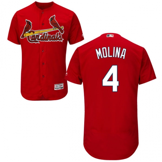 Men's Majestic St. Louis Cardinals #4 Yadier Molina Red Alternate Flex Base Authentic Collection MLB Jersey