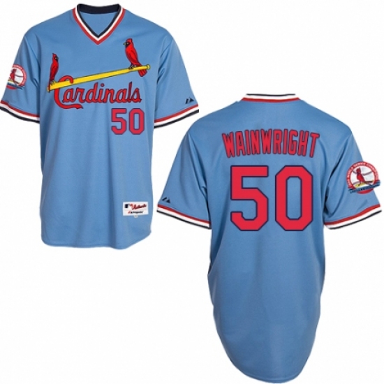 Men's Majestic St. Louis Cardinals #50 Adam Wainwright Replica Light Blue Cooperstown MLB Jersey