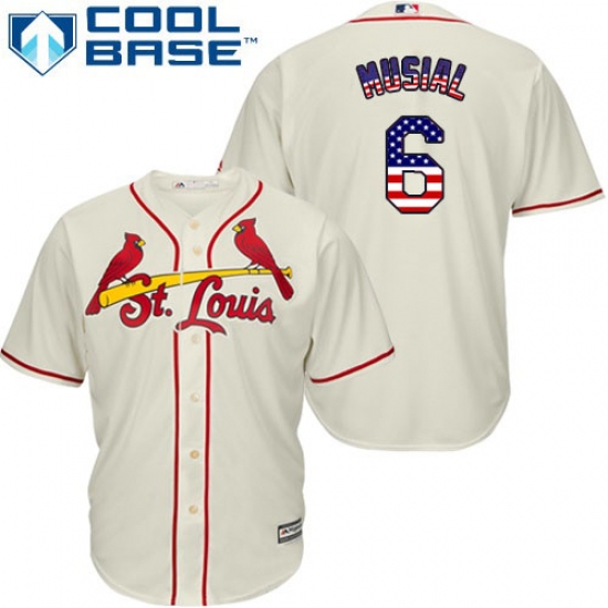 Men's Majestic St. Louis Cardinals #6 Stan Musial Replica Cream USA Flag Fashion MLB Jersey