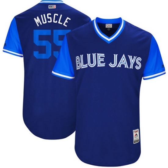 Home>MLB>Toronto Blue Jays>Russell Martin>Men's Majestic Toronto Blue Jays #55 Russell Martin "Muscle" Authentic Navy Blue 2017 Players Weekend MLB Jersey