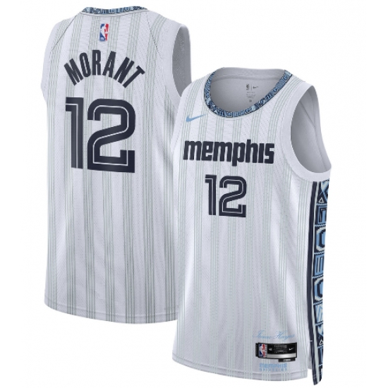 Men's Memphis Grizzlies #12 Ja Morant 2021 White Swingman Stitched Basketball Jersey