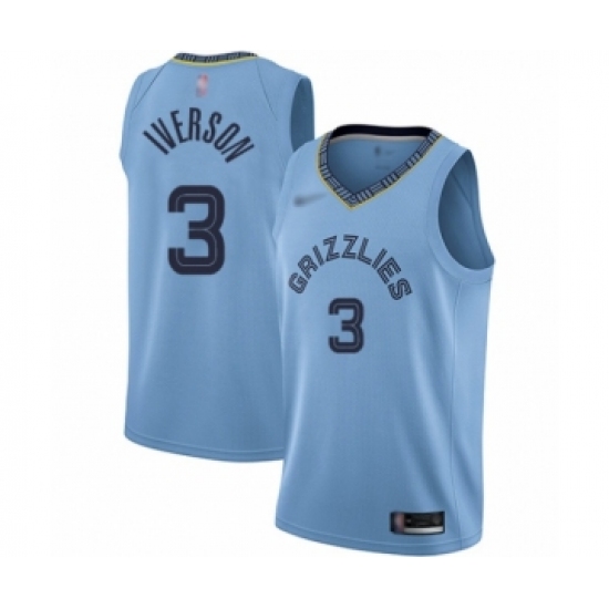 >Men's Memphis Grizzlies #3 Allen Iverson Authentic Blue Finished Basketball Jersey Statement Edition