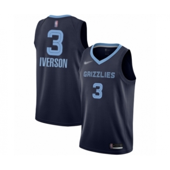 Men's Memphis Grizzlies #3 Allen Iverson Authentic Navy Blue Finished Basketball Jersey - Icon Edition
