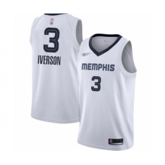 Men's Memphis Grizzlies #3 Allen Iverson Authentic White Finished Basketball Jersey - Association Edition