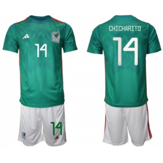 >Men's Mexico #14 Chicharito Green Home Soccer Jersey Suit