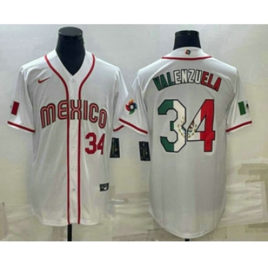 Men's Mexico Baseball #34 Fernando Valenzuela Number 2023 White World Classic Stitched Jersey1