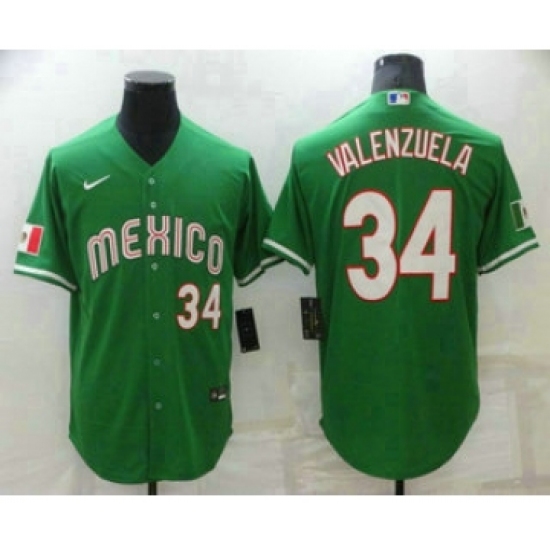 >Men's Mexico Baseball #34 Fernando Valenzuela Number Green 2023 World Baseball Classic Stitched Jersey