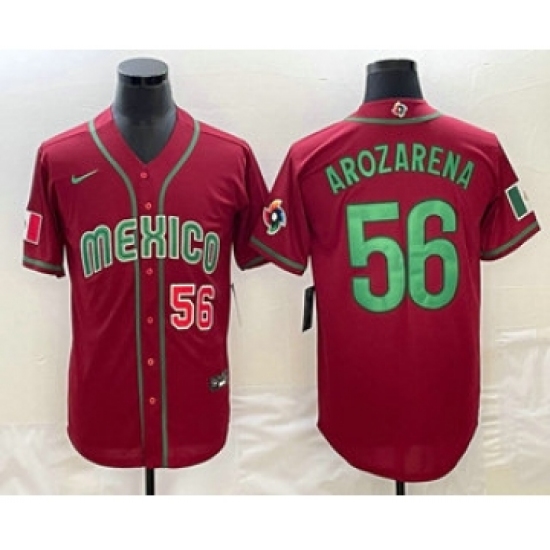 Men's Mexico Baseball #56 Randy Arozarena Number 2023 Red World Classic Stitched Jersey1