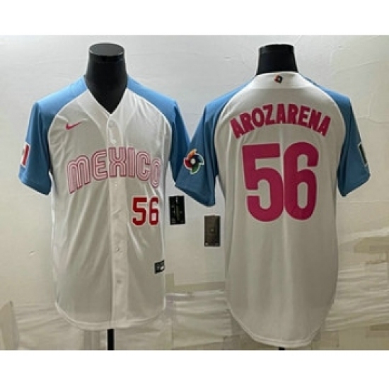 Men's Mexico Baseball #56 Randy Arozarena Number 2023 White Blue World Classic Stitched Jersey8