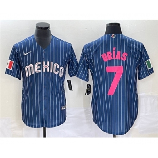 >Men's Mexico Baseball #7 Julio Urías 2023 Navy World Baseball Classic Stitched Jersey1