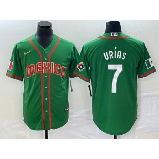 Men's Mexico Baseball #7 Julio Urias 2023 Green World Classic Stitched Jersey1