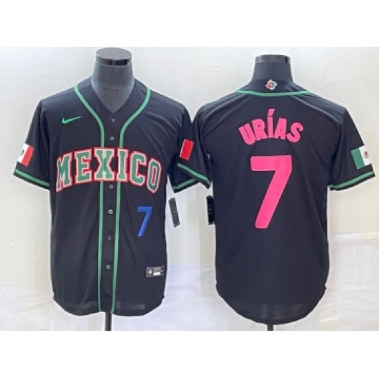 >Men's Mexico Baseball #7 Julio Urias Number 2023 Black Pink World Classic Stitched Jersey