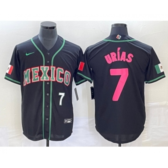 >Men's Mexico Baseball #7 Julio Urias Number 2023 Black Pink World Classic Stitched Jersey2