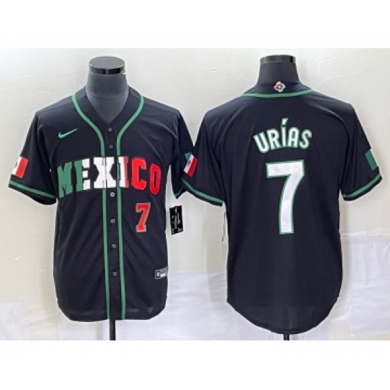 Men's Mexico Baseball #7 Julio Urias 2023 Black White World Classic Stitched Jersey