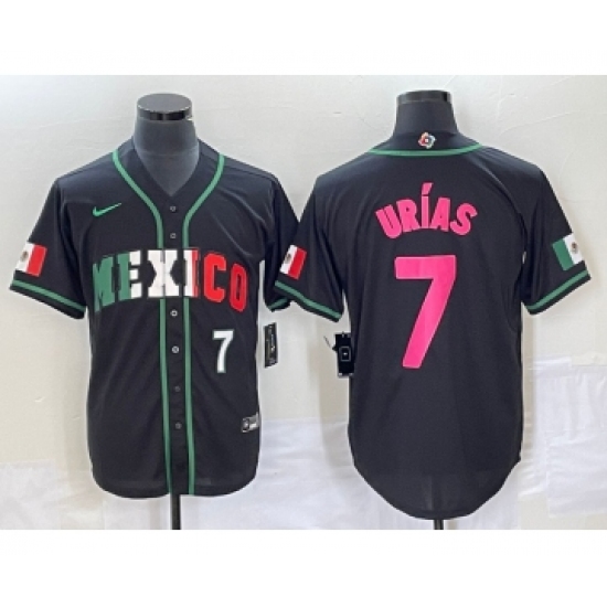 >Men's Mexico Baseball #7 Julio Urias Number 2023 Black World Baseball Classic Stitched Jersey1