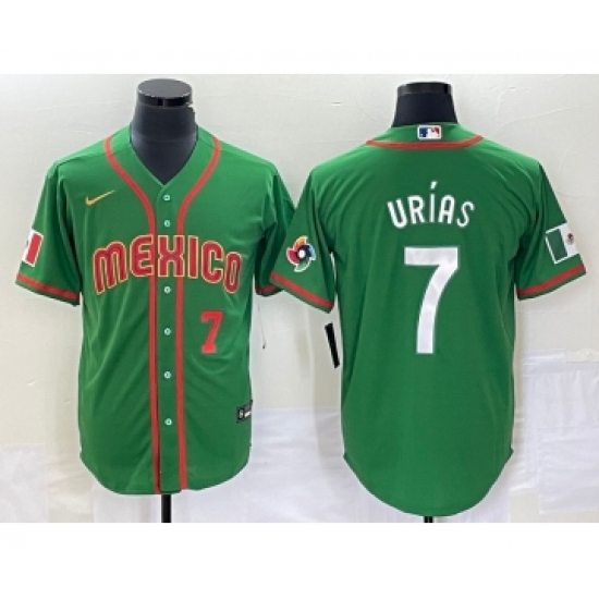 Men's Mexico Baseball #7 Julio Urias 2023 Green World Classic Stitched Jersey3