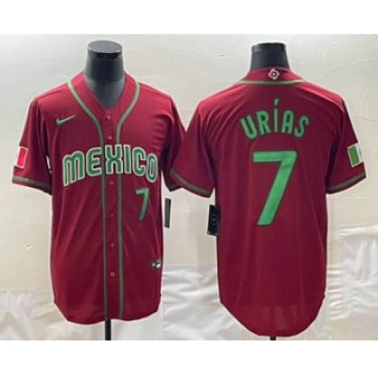 >Men's Mexico Baseball #7 Julio Urias Number 2023 Red Green World Baseball Classic Stitched Jerseys