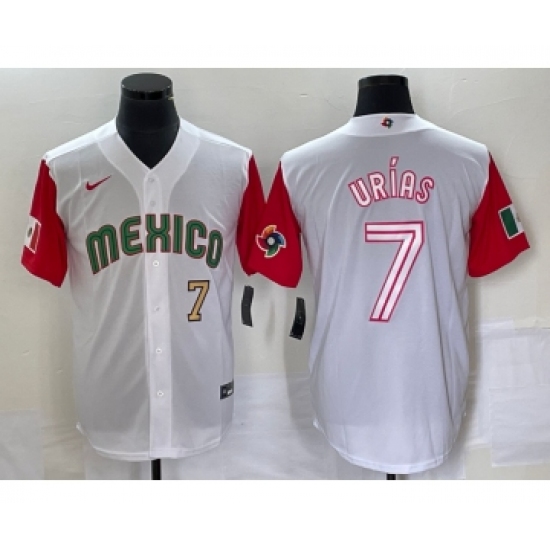 Men's Mexico Baseball #7 Julio Urias Number 2023 White Red World Classic Stitched Jersey42