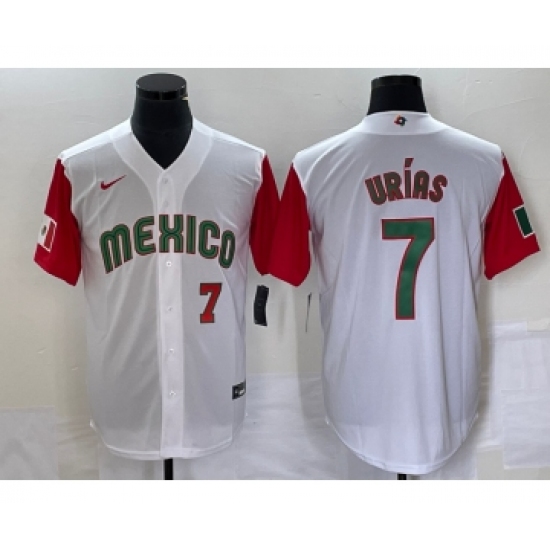 Men's Mexico Baseball #7 Julio Urias Number 2023 White Red World Classic Stitched Jersey 48