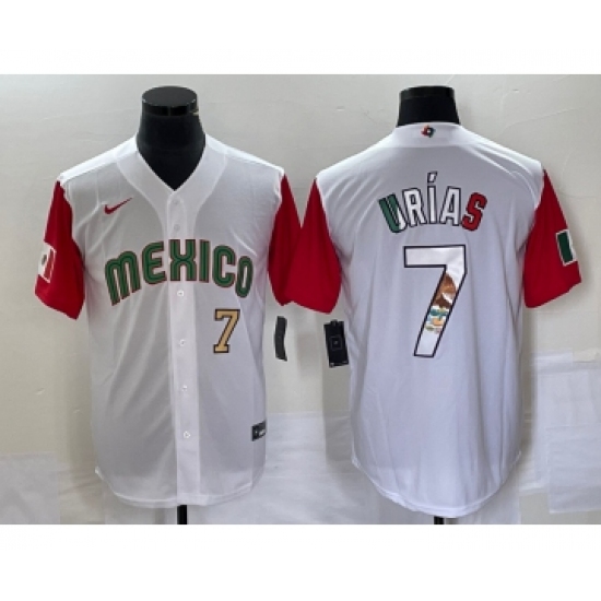 Men's Mexico Baseball #7 Julio Urias Number 2023 White Red World Classic Stitched Jersey 43