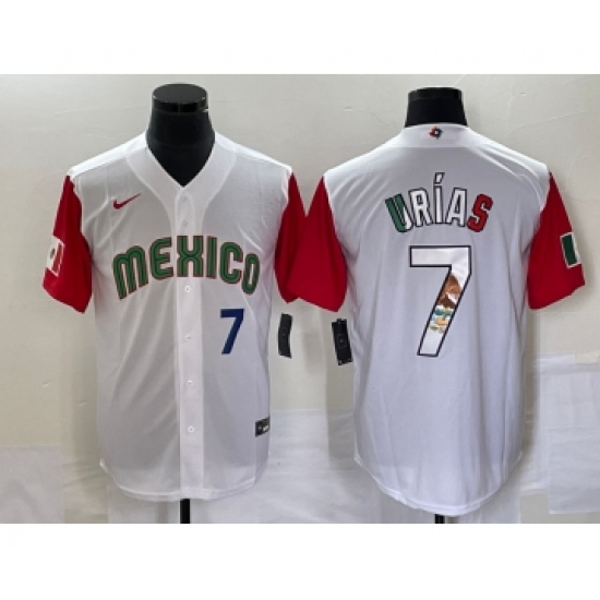 Men's Mexico Baseball #7 Julio Urias Number 2023 White Red World Classic Stitched Jersey12