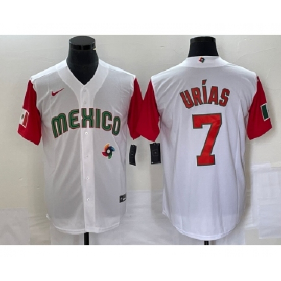 Men's Mexico Baseball #7 Julio Urias Number 2023 White Red World Classic Stitched Jersey23