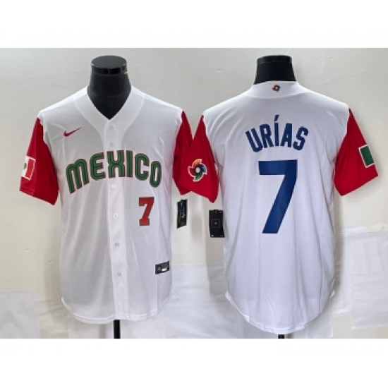 Men's Mexico Baseball #7 Julio Urias Number 2023 White Red World Classic Stitched Jersey