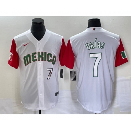 Men's Mexico Baseball #7 Julio Urias Number 2023 White Red World Classic Stitched Jersey 44