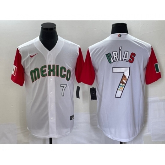 Men's Mexico Baseball #7 Julio Urias Number 2023 White Red World Classic Stitched Jersey 48