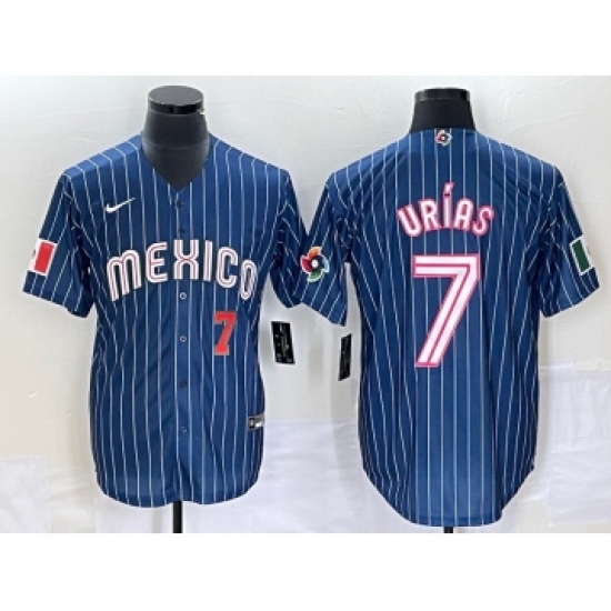 >Men's Mexico Baseball #7 Julio Urias Number Navy Blue Pinstripe 2020 World Series Cool Base Nike Jersey3