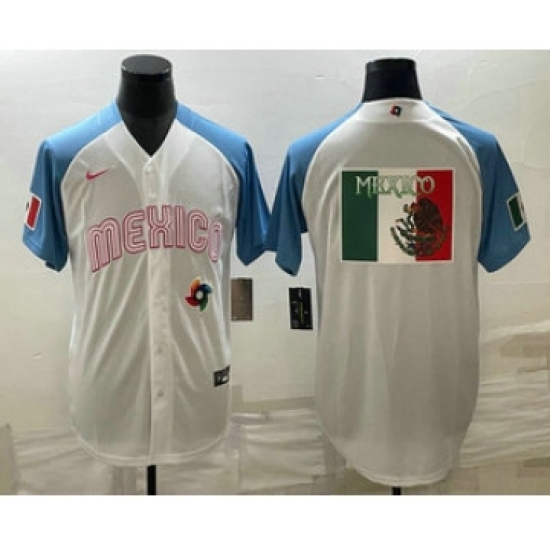 Men's Mexico Baseball Big Logo 2023 White Blue World Classic Stitched Jersey1