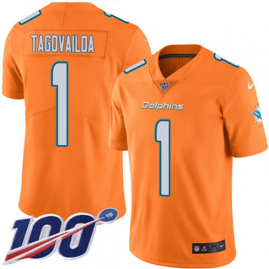 Men's Miami Dolphins #1 Tua Tagovailoa Orange Stitched Limited Rush 100th Season Jersey