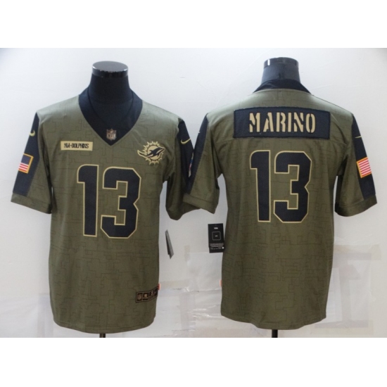>Men's Miami Dolphins #13 Dan Marino Nike Olive 2021 Salute To Service Limited Player Jersey