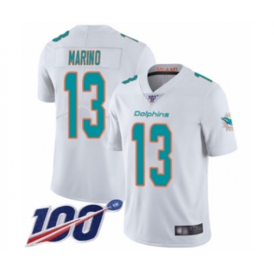 Men's Miami Dolphins #13 Dan Marino White Vapor Untouchable Limited Player 100th Season Football Jersey