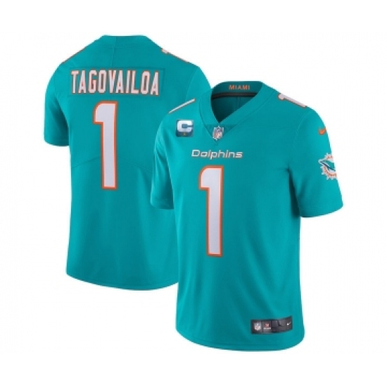 Men's Miami Dolphins 2022 #1 Tua Tagovailoa Aqua With 1-star C Patch Vapor Limited Stitched NFL Jersey
