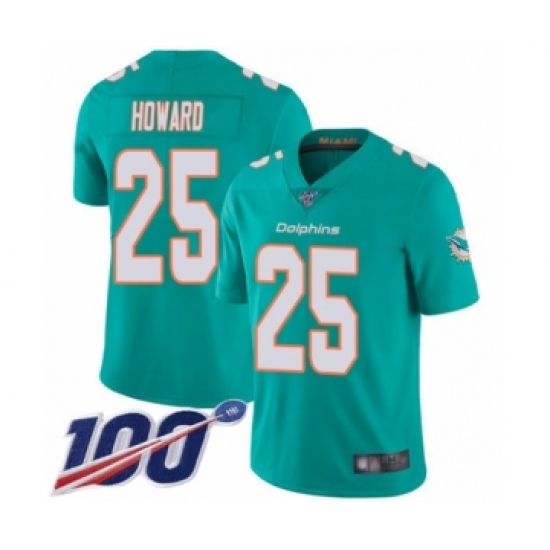 Men's Miami Dolphins #25 Xavien Howard Aqua Green Team Color Vapor Untouchable Limited Player 100th Season Football Jersey