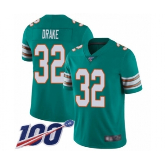 >Men's Miami Dolphins #32 Kenyan Drake Aqua Green Alternate Vapor Untouchable Limited Player 100th Season Football Jersey
