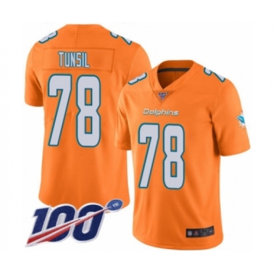 Men's Miami Dolphins #78 Laremy Tunsil Limited Orange Rush Vapor Untouchable 100th Season Football Jersey