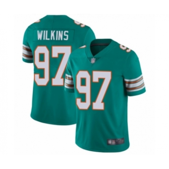 >Men's Miami Dolphins #97 Christian Wilkins Aqua Green Alternate Vapor Untouchable Limited Player Football Jersey