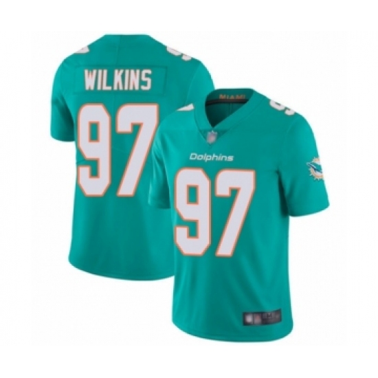 >Men's Miami Dolphins #97 Christian Wilkins Aqua Green Team Color Vapor Untouchable Limited Player Football Jersey
