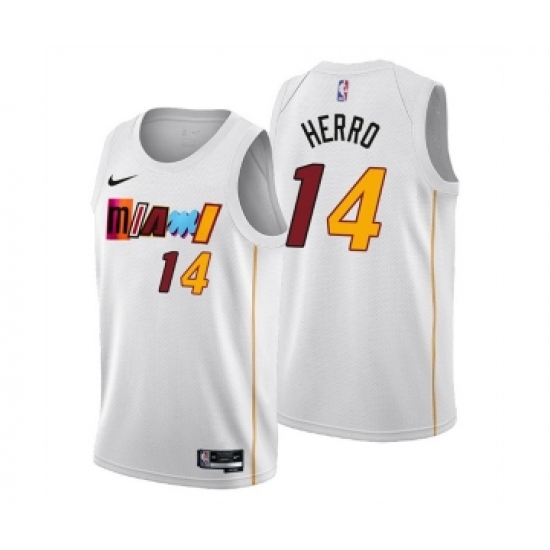 >Men's Miami Heat #14 Tyler Herro 2022-23 White City Edition Stitched Jersey