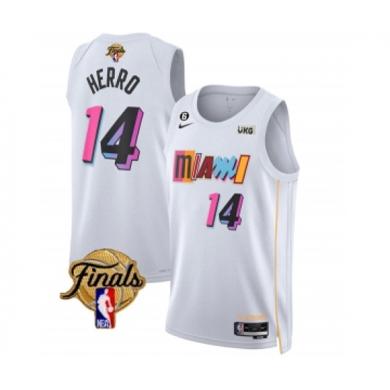 Men's Miami Heat #14 Tyler Herro White 2023 Finals City Edition With NO.6 Stitched Basketball Jersey