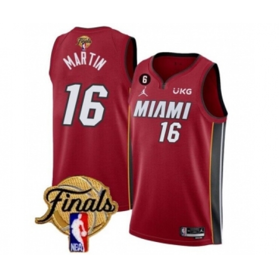 Men's Miami Heat #16 Caleb Martin Red 2023 Finals Statement Edition With NO.6 Stitched Basketball Jersey
