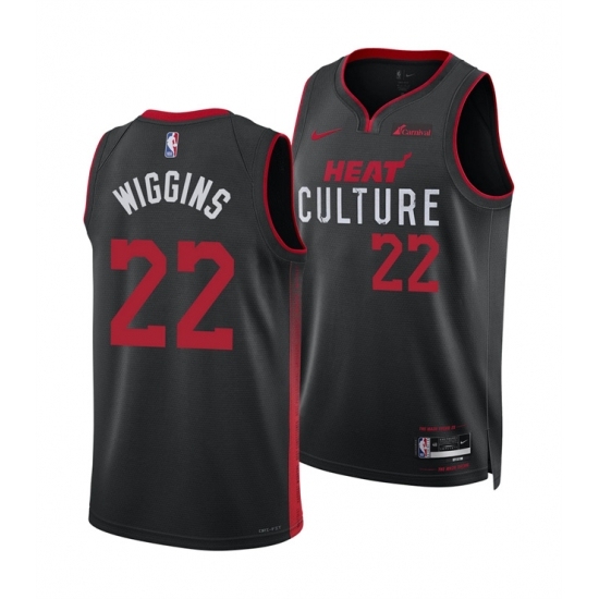>Men's Miami Heat #22 Andrew Wiggins Black 2025 City Edition Stitched Basketball Jersey