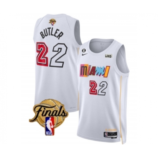 Men's Miami Heat #22 Jimmy Butler White 2023 Finals City Edition With NO.6 Stitched Basketball Jersey
