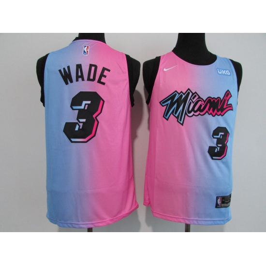 Men's Miami Heat #3 Dwyane Wade Pink-Blue Swingman Basketball Jersey
