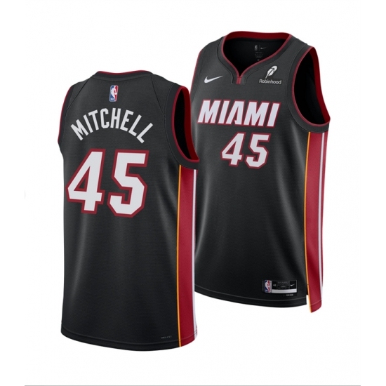 Men's Miami Heat #45 Davion Mitchell Black 2025 Icon Edition Swingman Stitched Basketball Jersey