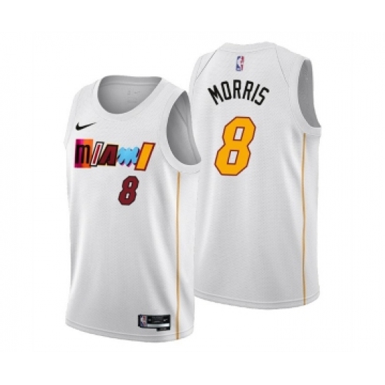 >Men's Miami Heat #8 Markieff Morris 2022-23 White City Edition Stitched Jersey