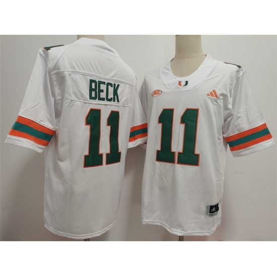 Men's Miami Hurricanes #11 Carson Beck White Stitched Football Jersey